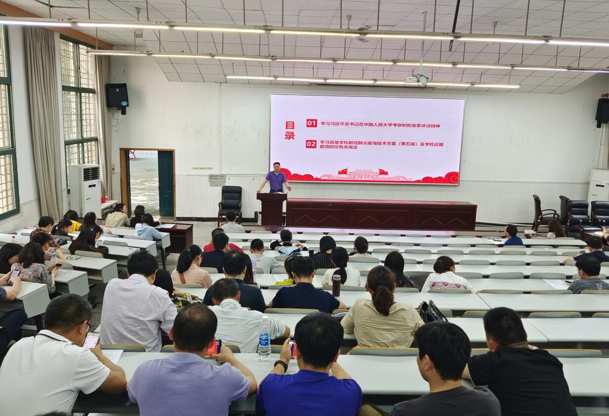 随后,李余廷书记传达了习近平总书记在5月5日中共中央政治局常务委员会会议上发表的重要讲话精神,并带领大家学习了高等学校新冠肺炎疫情技术方案(第五版)及学校近期疫情防控有关规定。他强调,大家要把思想和行动统一到党中央决策部署上来,自觉在思想上政治上行动上同党中央保持高度一致,克服麻痹思想、侥幸心理、松劲心态,切实增强责任意识、自我防护意识,自觉承担防控责任和义务,落实个人、家庭等日常防护措施,自觉主动进行免疫接种工作,以实际行动坚决巩固住来之不易的疫情防控成果。
