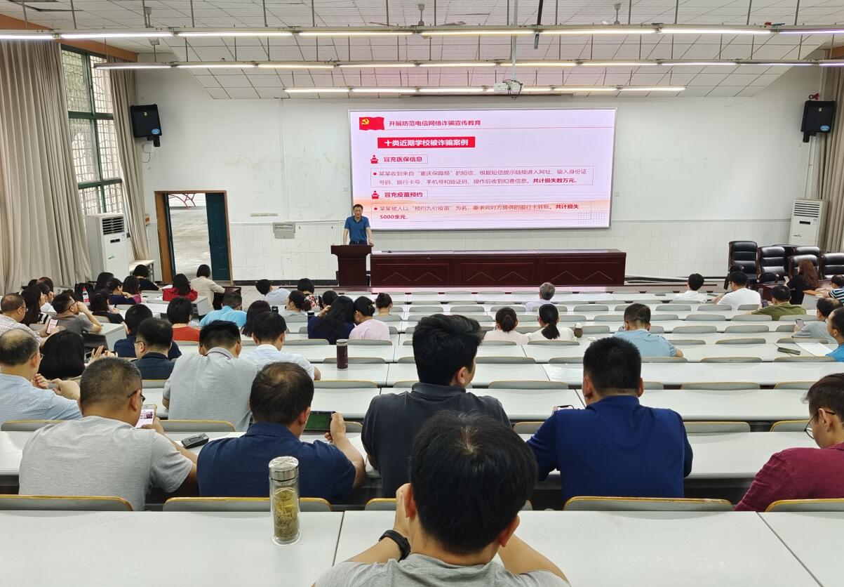 最后,李书记介绍了习近平总书记对打击治理电信网络诈骗犯罪工作的重要指示,并结合“冒充医保信息”“冒充疫苗预约”“冒充中奖信息”“冒充金融机构诈骗”等十类近期学校被诈骗案例,对全体教职工开展防范电信网络诈骗宣传教育。