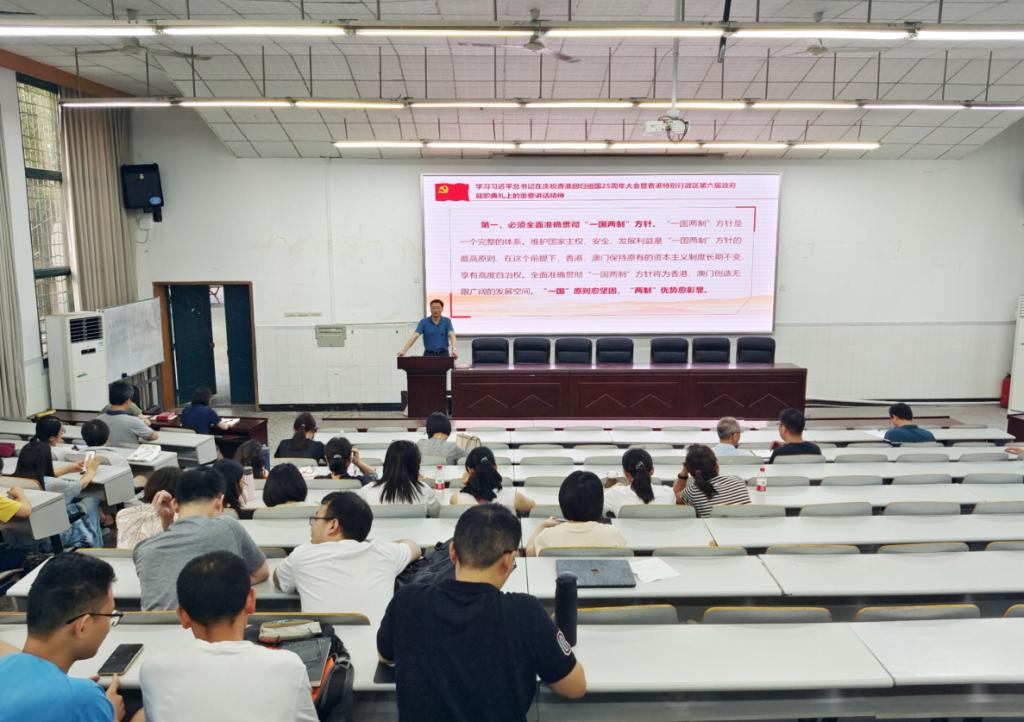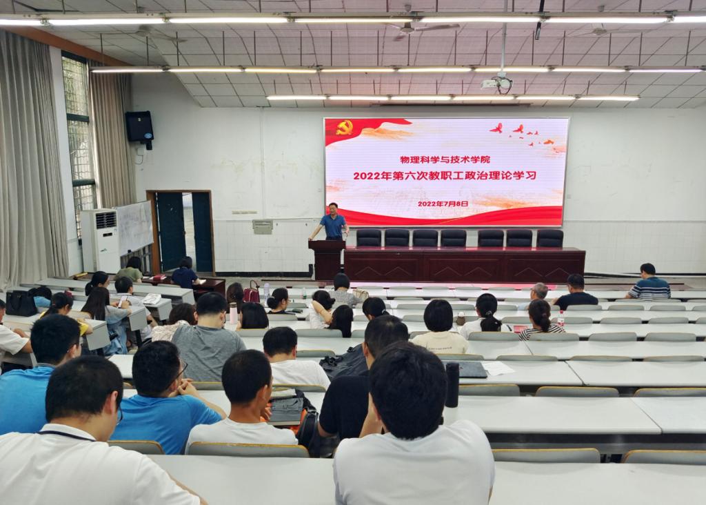 7月8日下午,亚洲av 在大阶梯教室举行2022年第六次教职工政治理论学习会。学习会由亚洲av 党委书记李余廷主持,亚洲av 全体教职工参加了此次学习。