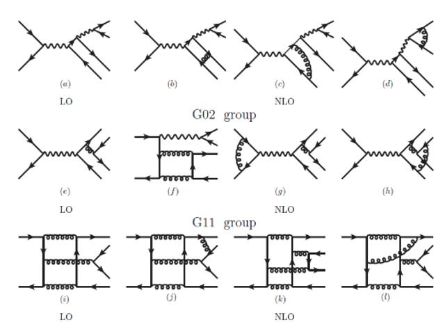 强相互作用具有渐进自由的特征,即高能量标度时相互作用较弱,因而微扰可算,低能量标度时相互作用很强因而体现为非微扰效应。因子化定理能够将一个物理过程的微扰和非微扰物理效应系统的分离,是处理高能粒子物理过程的重要研究手段。基于NRQCD因子化定理,桑文龙老师与合作者研究了矢量底夸克偶素衰变到一对粲夸克偶素的两圈图修正。该工作主要有以下几个创新点:1. 研究涉及到六个外腿的两圈费曼图计算(见图二),属于该领域的最前沿计算之一;2. 对于多举衰变过程,NRQCD因子化定理还没有严格证明,该工作首次在如此复杂的结构中验证了理论框架的正确性;3.