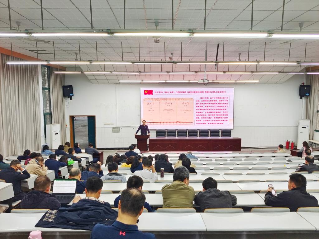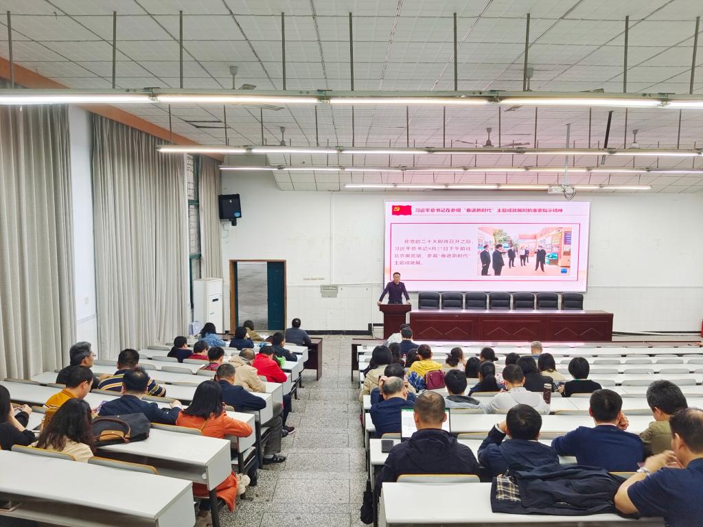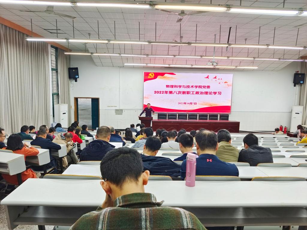 10月7日下午,亚洲av 在大阶梯教室举行2022年第八次教职工政治理论学习会。学习会由亚洲av 党委书记李余廷主持,亚洲av 全体教职工参加了此次学习。